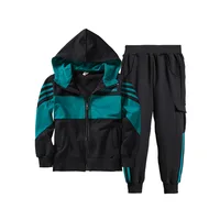 Home Kids Kids Track Suit 2024 autumn Child Tracksuit Hooded Clothes Boys Sport Suit Teen Kids Cotton zipper Hoodies jacket + striped Pants 5 8 10 12 year