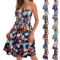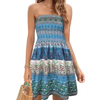 Strapless Dress For Women Summer Dresses For Women Beach Cover Ups Strapless Boho Floral Print Sundress