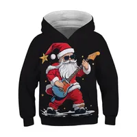 Christmas Santa Claus Print Graphic Hoodies for Children Top Comfy Trendy Hooded Pullover Kids Clothes for Autumn Winter Outdoor