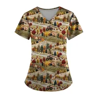 Home Women Women T-Shirts Printed Scrub Working Uniform Tops For Women’s Cross V-Neck Halloween Print Short Sleeve Fun T-Shirts Workwear Tee With Pockets