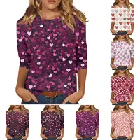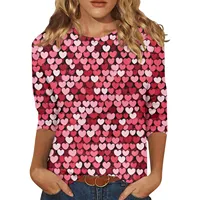 Women’s Fashion Casual 3/4 Sleeve Print Stand Collar Pullover Top